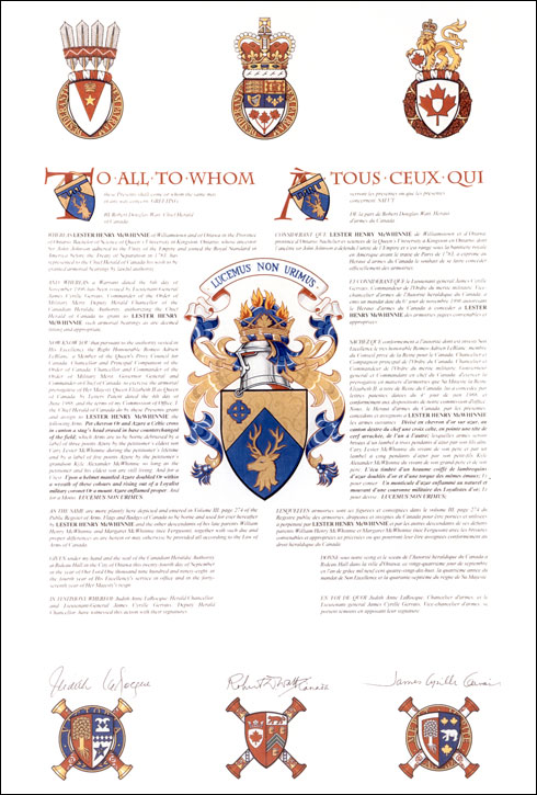 Additional InformationCreator(s)Original concept of Richard Carruthers, assisted by the heralds of the Canadian Heraldic Authority. PainterDebra MacGarvie CalligrapherNot applicable Recipient TypeIndividual |