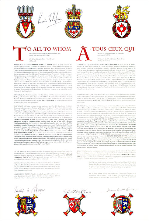 Additional InformationCreator(s)Original concept of Robert D. Watt, Chief Herald of Canada, assisted by the heralds of the Canadian Heraldic Authority. PainterDebra MacGarvie CalligrapherJudith Bainbridge Recipient TypeIndividual Special DesignationLieutenant Governor |