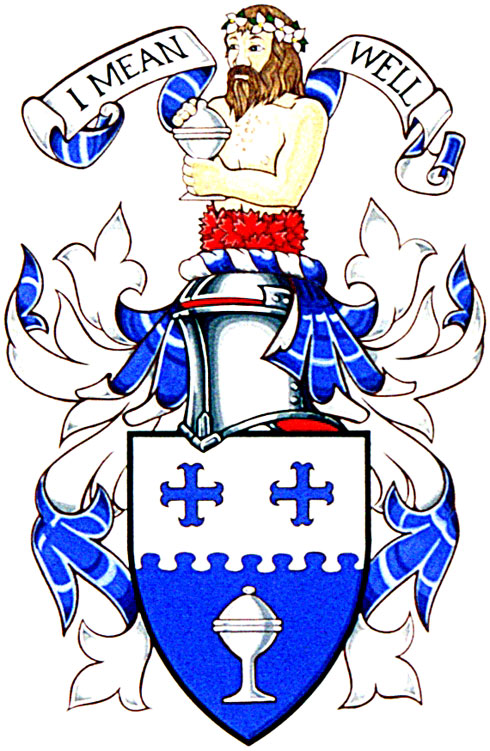 CrestBlazonA demi wild man wreathed about the head with trilliums proper and about the loins with maples leaves Gules bearing a covered cup Argent; |