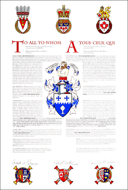 Additional InformationCreator(s)Original concept of Richard Carruthers, assisted by the heralds of the Canadian Heraldic Authority. PainterDebra MacGarvie CalligrapherNot applicable Recipient TypeIndividual |