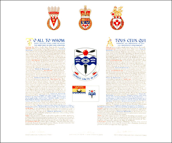 Additional InformationCreator(s)Original concept of Robert Pichette, Dauphin Herald Extraordinary, and the Town of Rothesay Armorial Bearings Committee, assisted by the heralds of the Canadian Heraldic Authority. PainterLinda Nicholson CalligrapherNancy Ellis Recipient TypeCivil Institution
