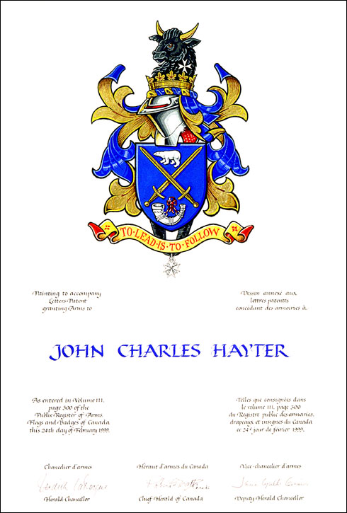The contents of this Register are intended for research purposes only. The heraldic emblems found in the Register may not be reproduced in any form or in any media without the written consent of the Canadian Heraldic Authority and/or the recipient.