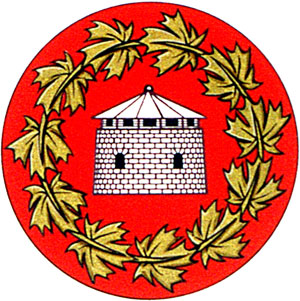 Arms of the Corporation of the City of KingstonBlazonGules a Martello tower Argent upon barry wavy of five Argent and Azure in chief three Eastern crowns Or; SymbolismThe Martello Tower represents the four such towers built as military fortifications along Kingston’s harbour in the 1840s, thus referring to the city’s military heritage. The crowns allude to the city’s name (“King’s town”) and represent the three municipalities (the City of Kingston, Kingston Township and Pittsburgh Township) that amalgamated in 1998 to form the current city. The waves represent the confluence of Lake Ontario, the St. Lawrence River and the Cataraqui River/Rideau Canal system. |