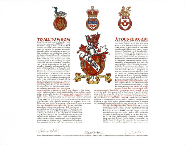 Additional InformationCreator(s)Original concept of Bruce Patterson, based on the grant to Senator Rupert Davies by the Kings of Arms of England, assisted by the Heralds of the Canadian Heraldic Authority PainterGordon Macpherson CalligrapherNancy Ellis Recipient TypeIndividual |
