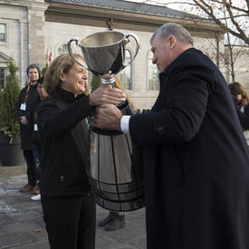 November 21, 2017On the occasion of the 105th Grey Cup Championship Game, the Governor General and Mr. Randy Ambrosie, Canadian Football League Commissioner, welcomed Canadians to Rideau Hall to see the Grey Cup.