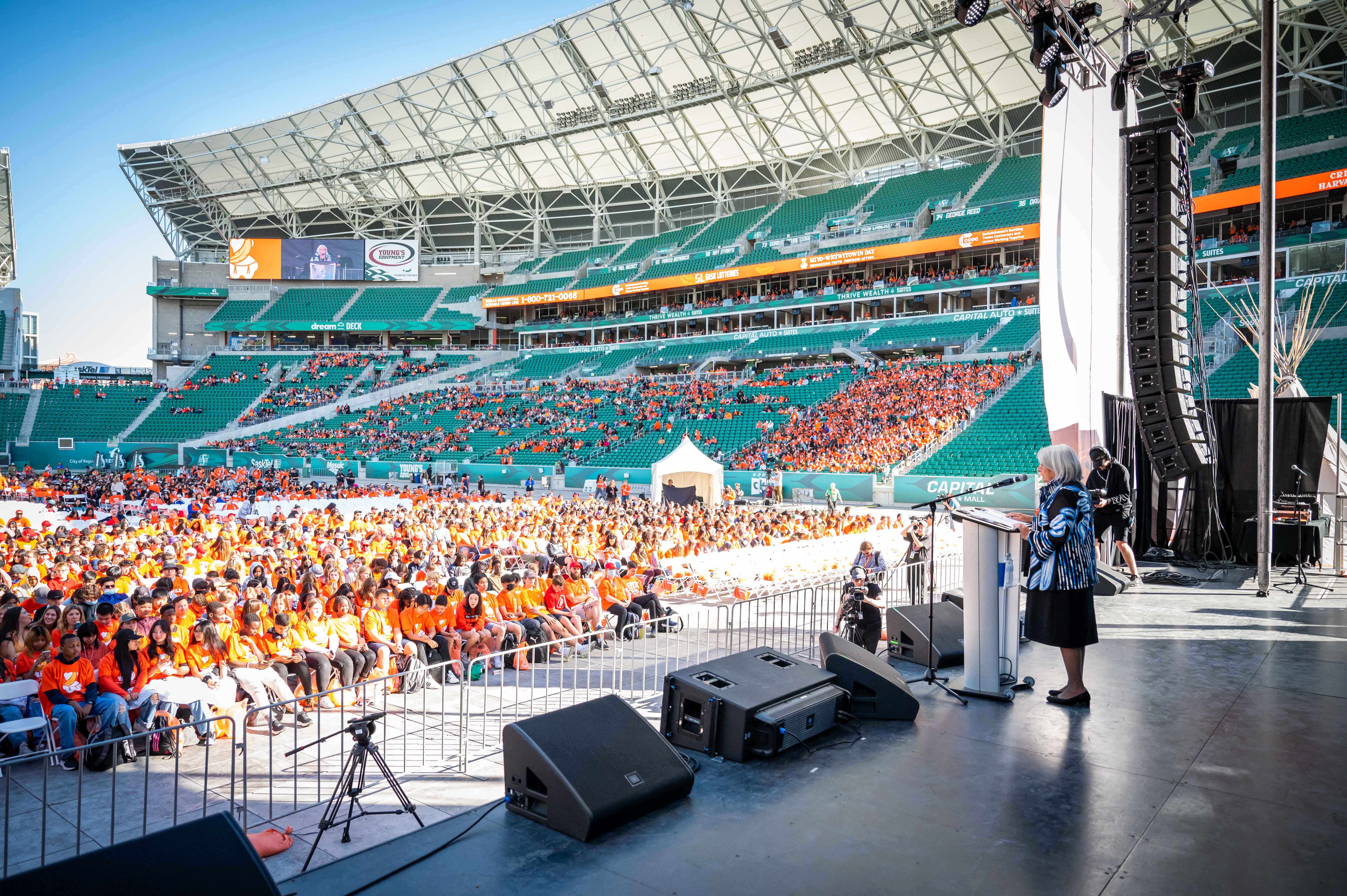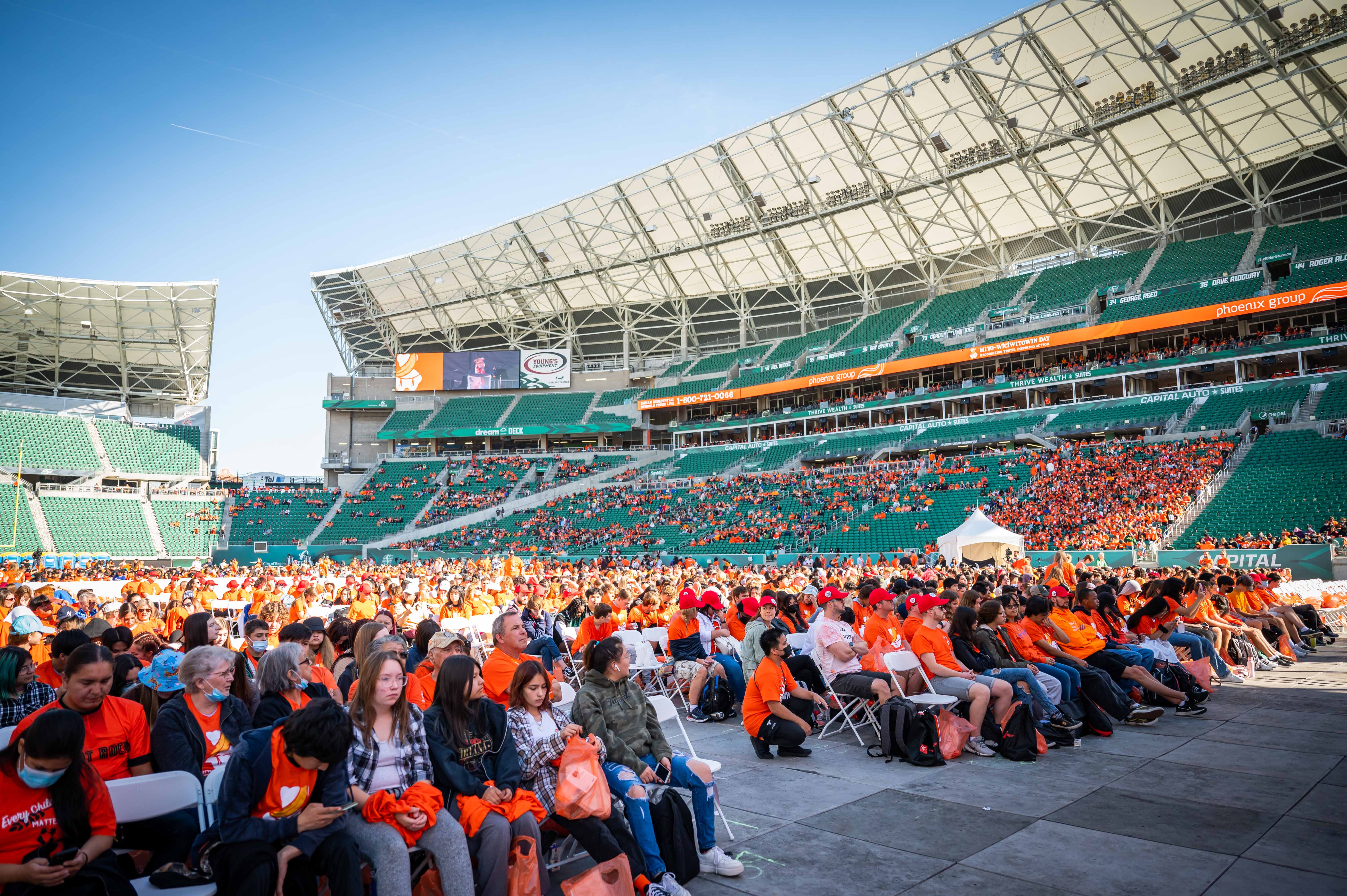 Cet événement commémoratif a réuni 18 000 élèves du secondaire, des chefs d’entreprise et des membres du public afin de discuter des répercussions des pensionnats et de reconnaître l’importance de mettre en œuvre les 94 appels à l’action lancés par la Commission de vérité et réconciliation.