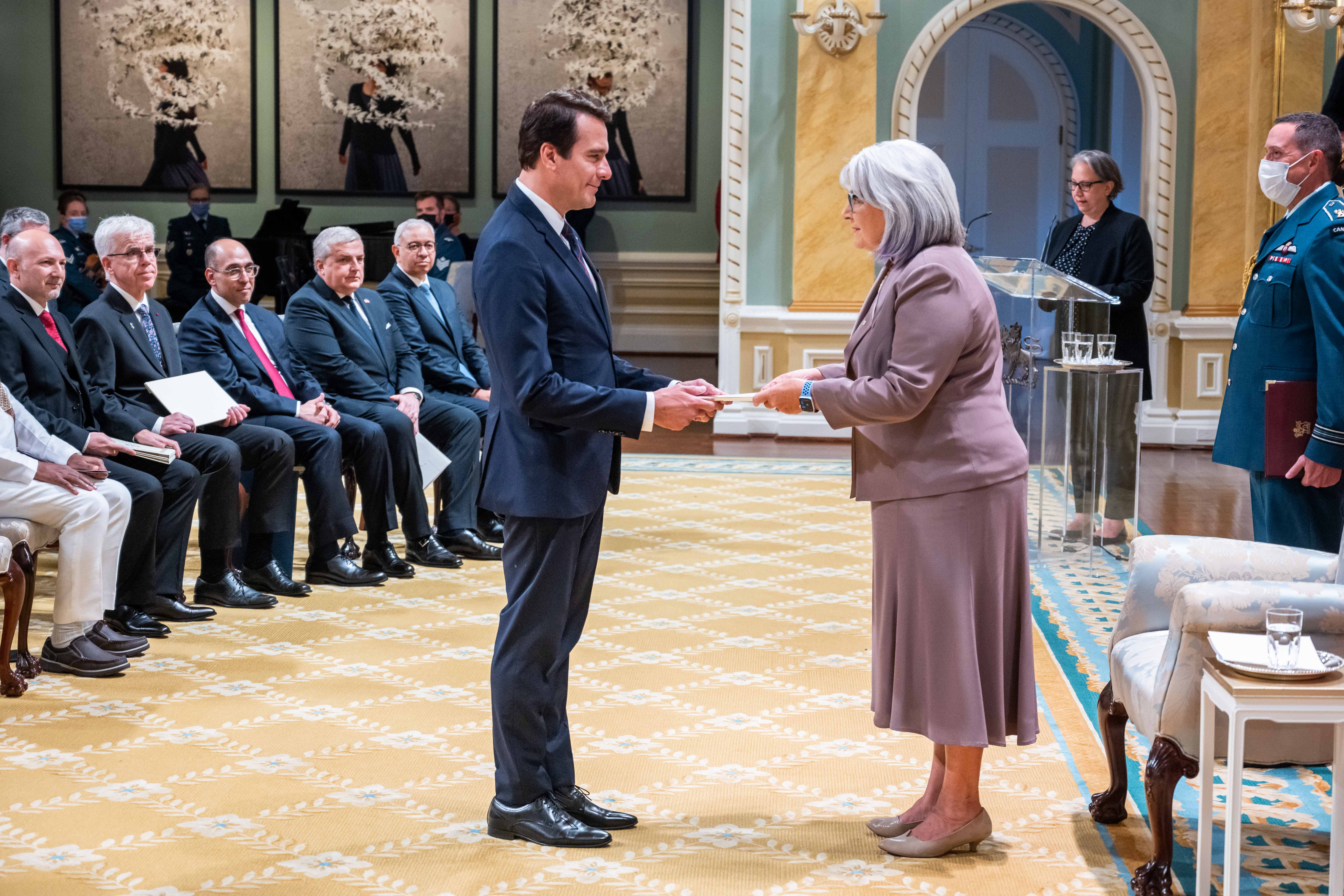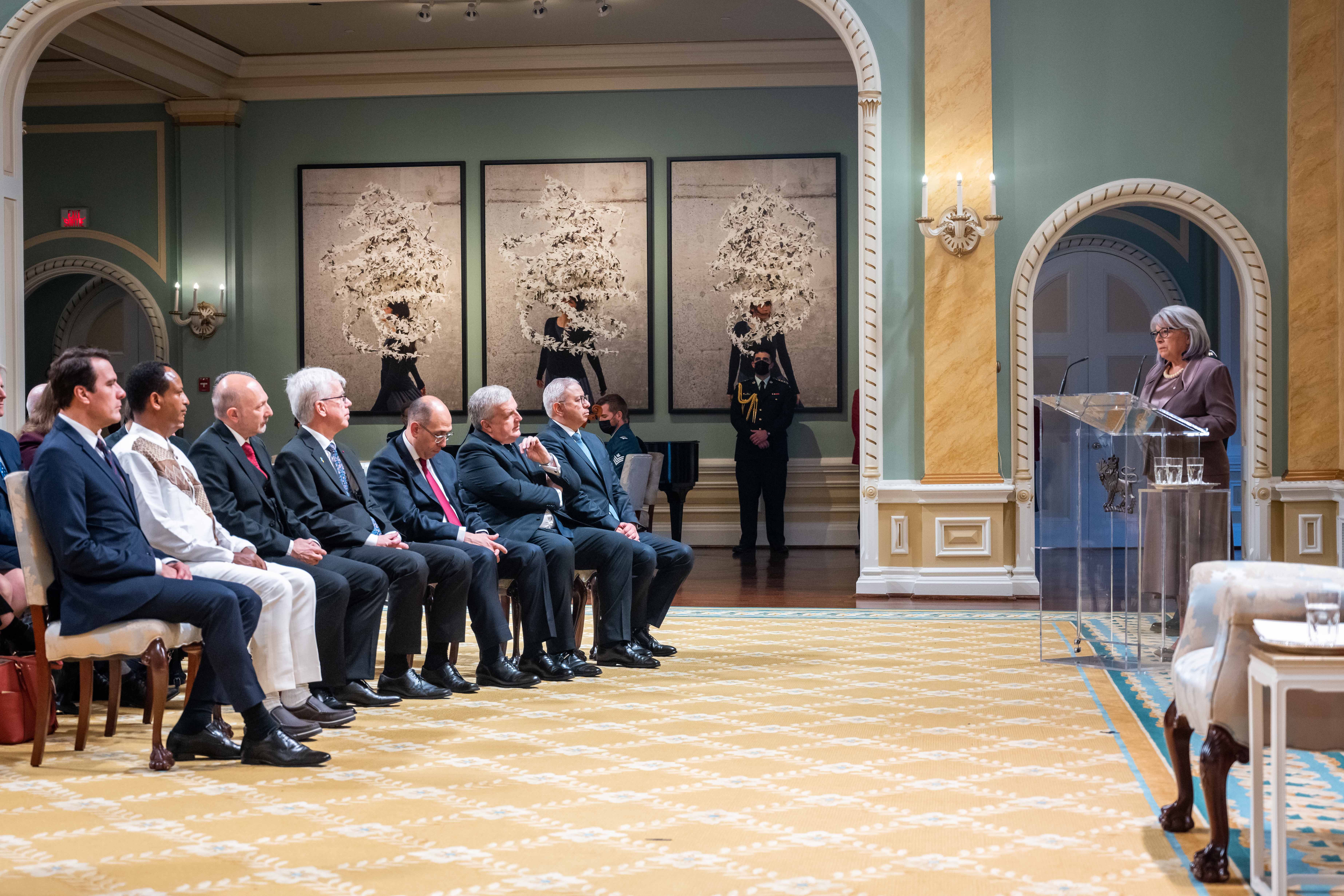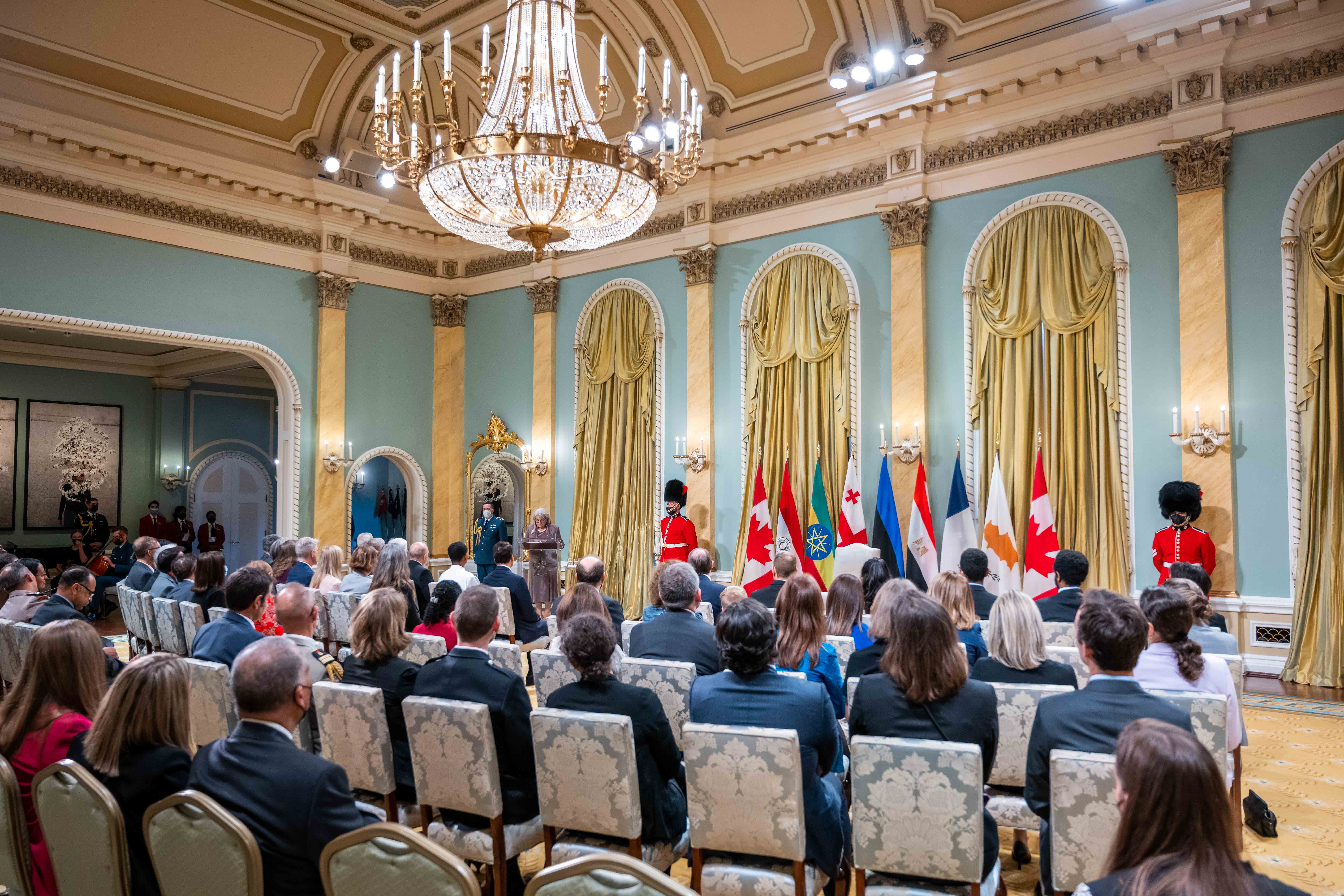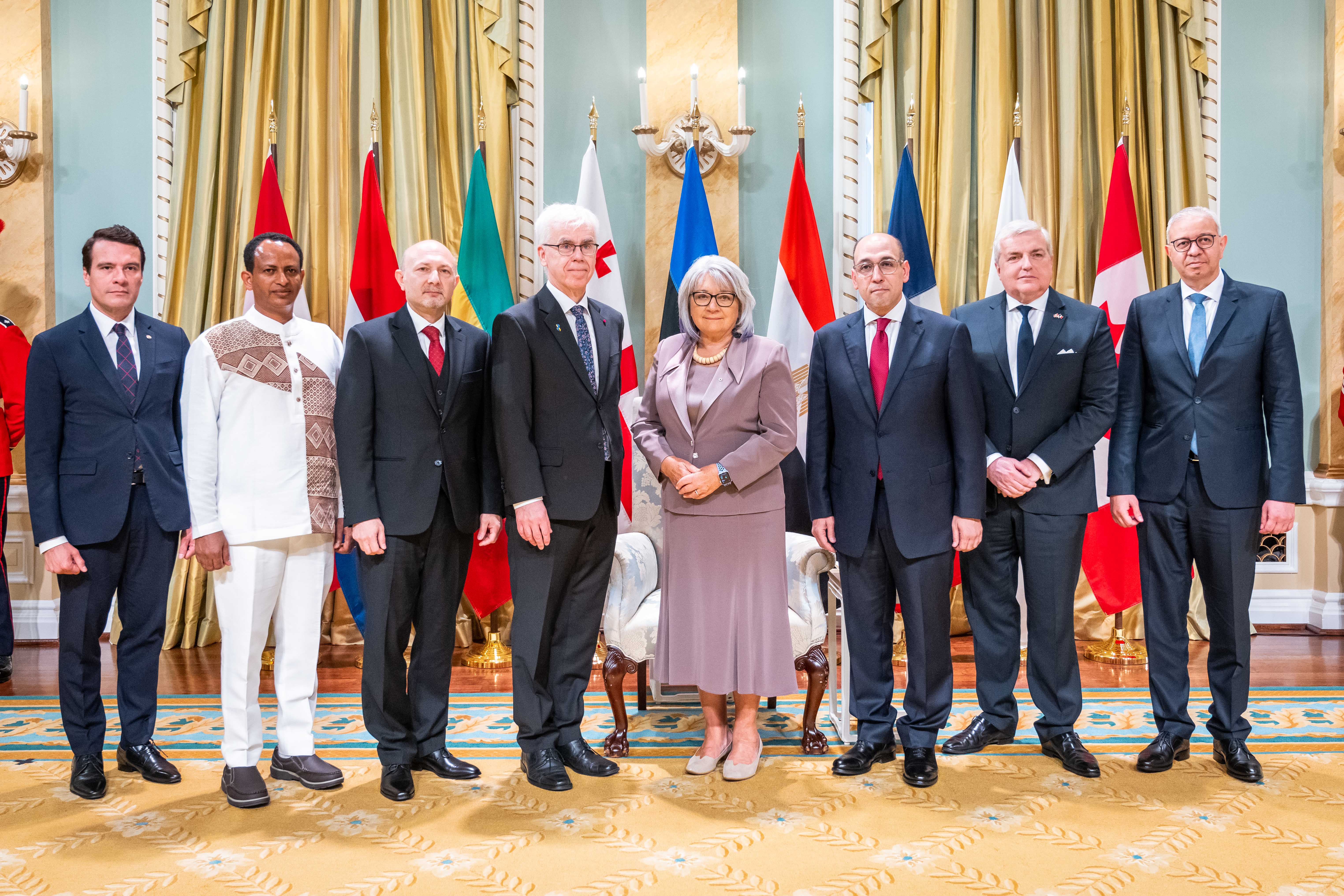 Son Excellence la très honorable Mary Simon, gouverneure générale du Canada, a accueilli sept chefs de mission au Canada lors d’une cérémonie officielle de présentation de lettres de créance tenue à Rideau Hall.