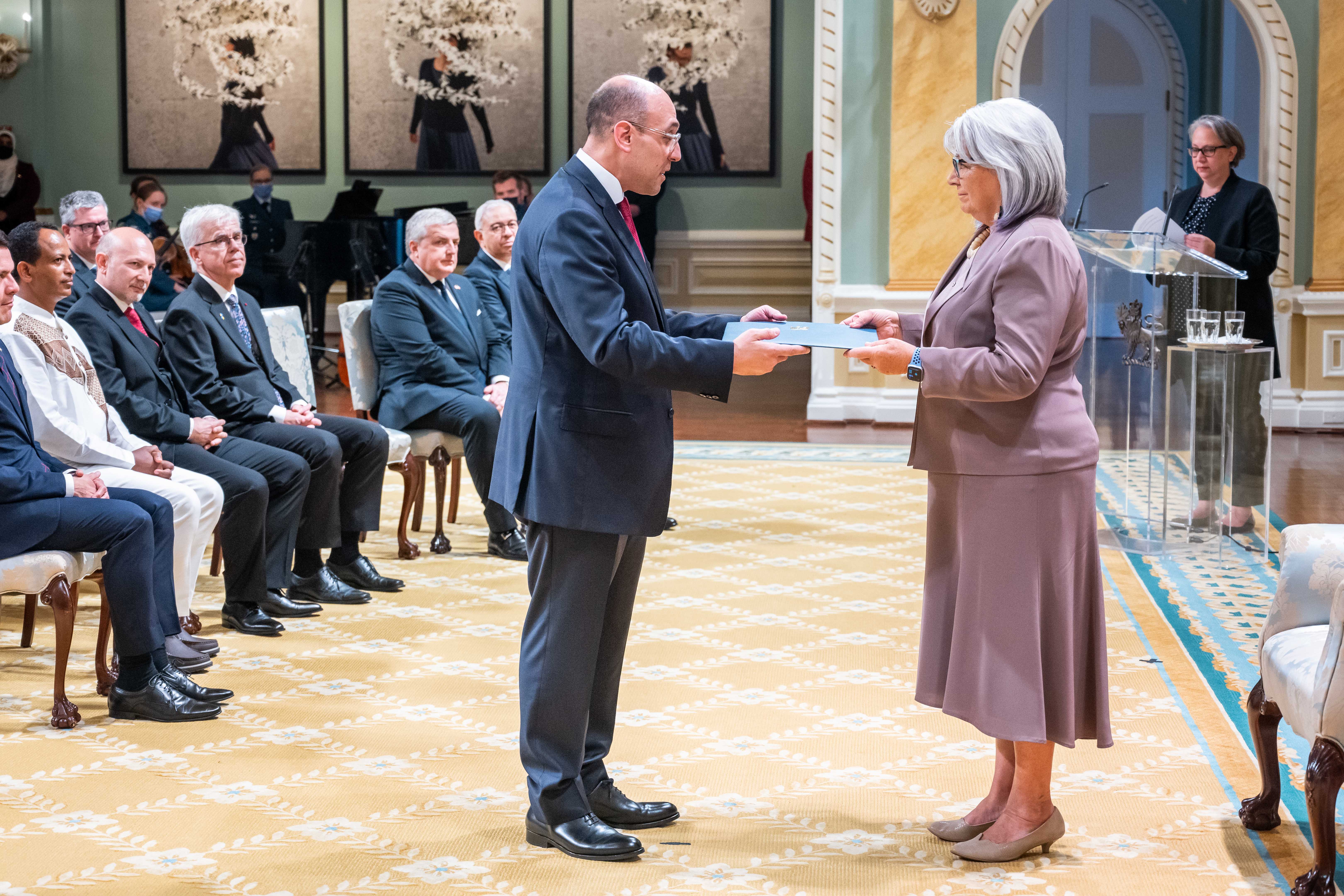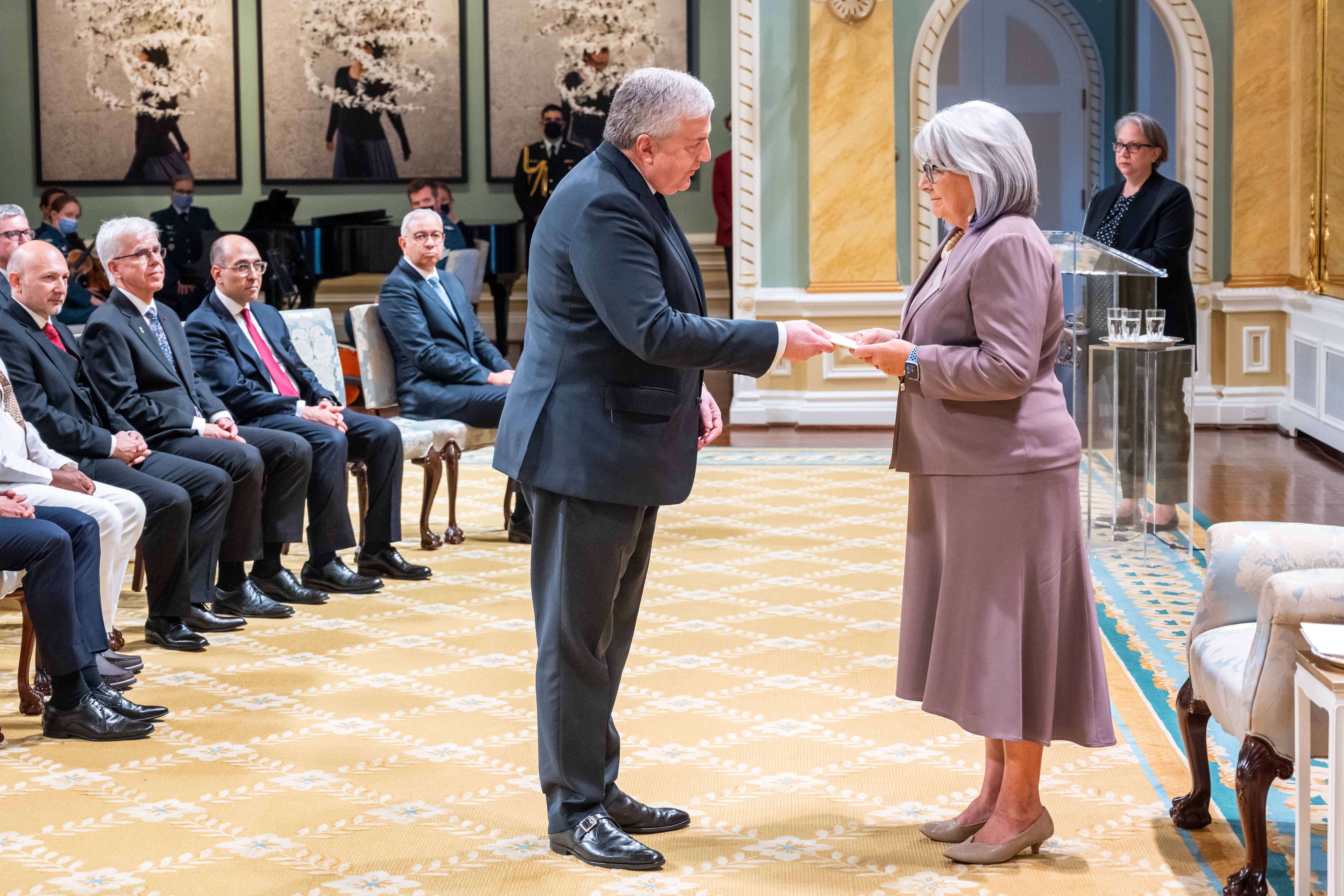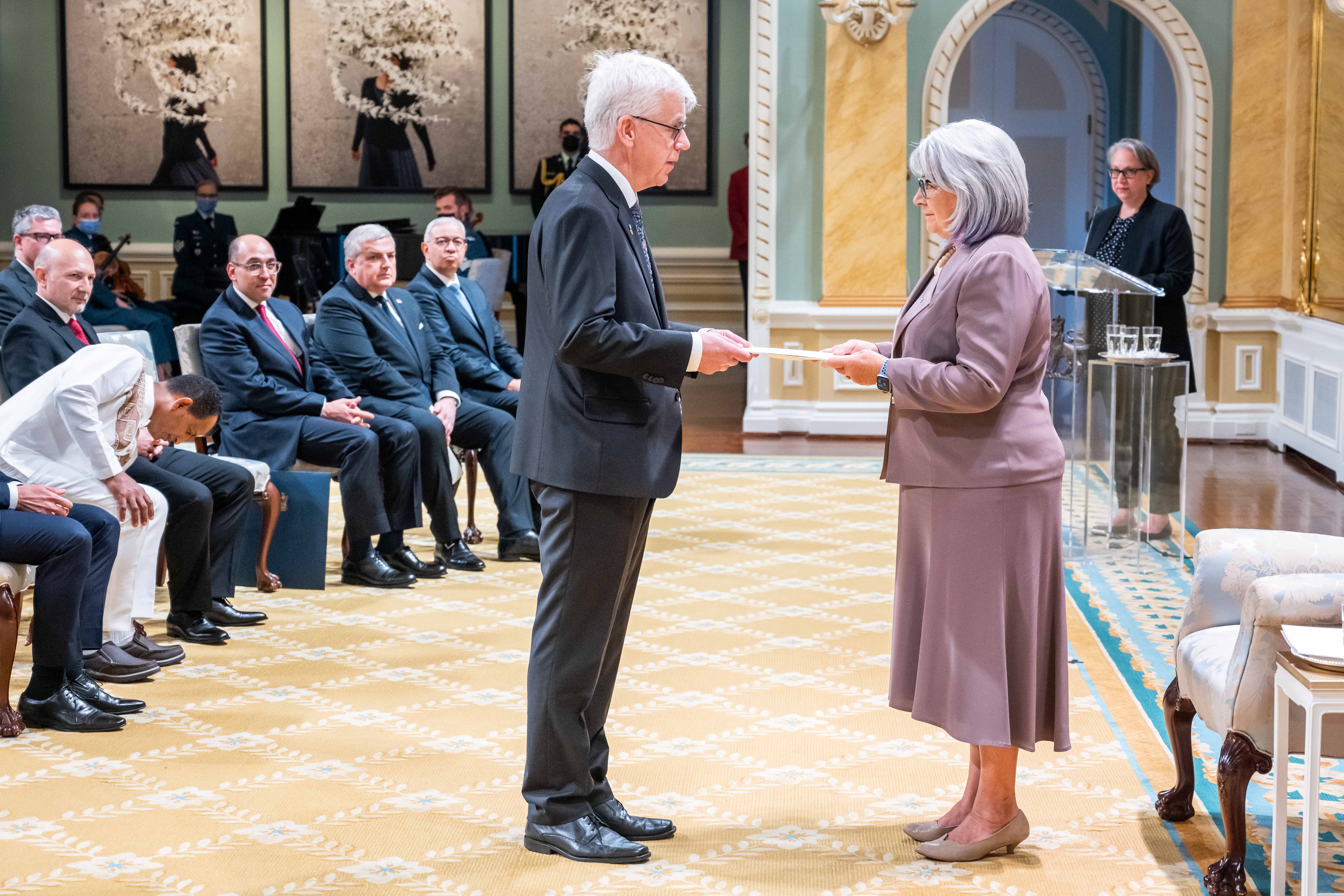À leur arrivée au Canada, et avant de pouvoir exercer leurs fonctions, les nouveaux chefs de mission doivent présenter leurs lettres de créance au gouverneur général. Une lettre de créance est le document officiel qui désigne un diplomate comme ambassadeur ou haut-commissaire dans un autre pays.