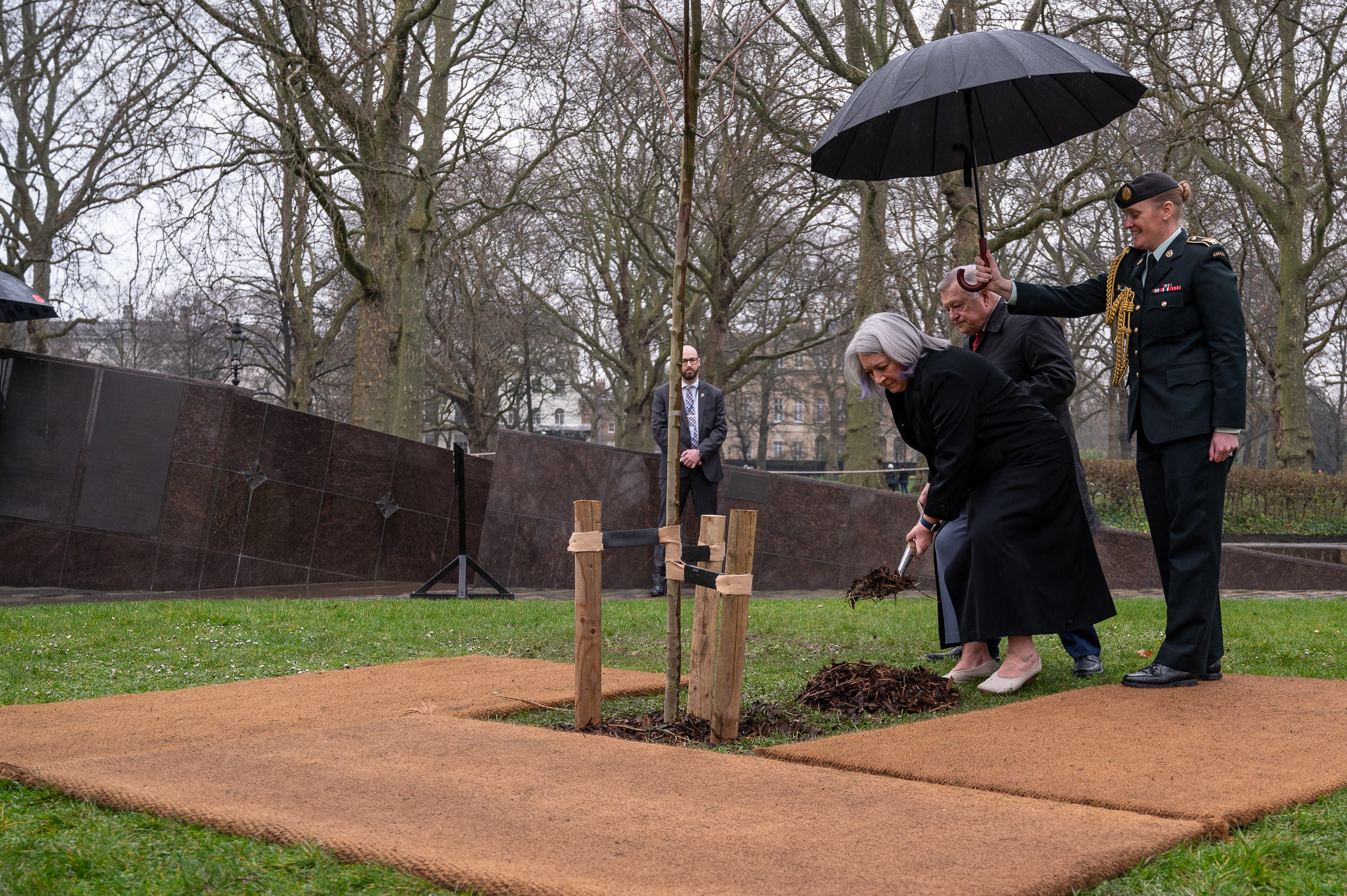 Pendant leur séjour à Londres, Leurs Excellences ont pris part à une cérémonie de plantation d’un arbre pour marquer le jubilé, et la gouverneure générale a fait une brève allocution. Un moment de silence en hommage au peuple ukrainien a suivi.