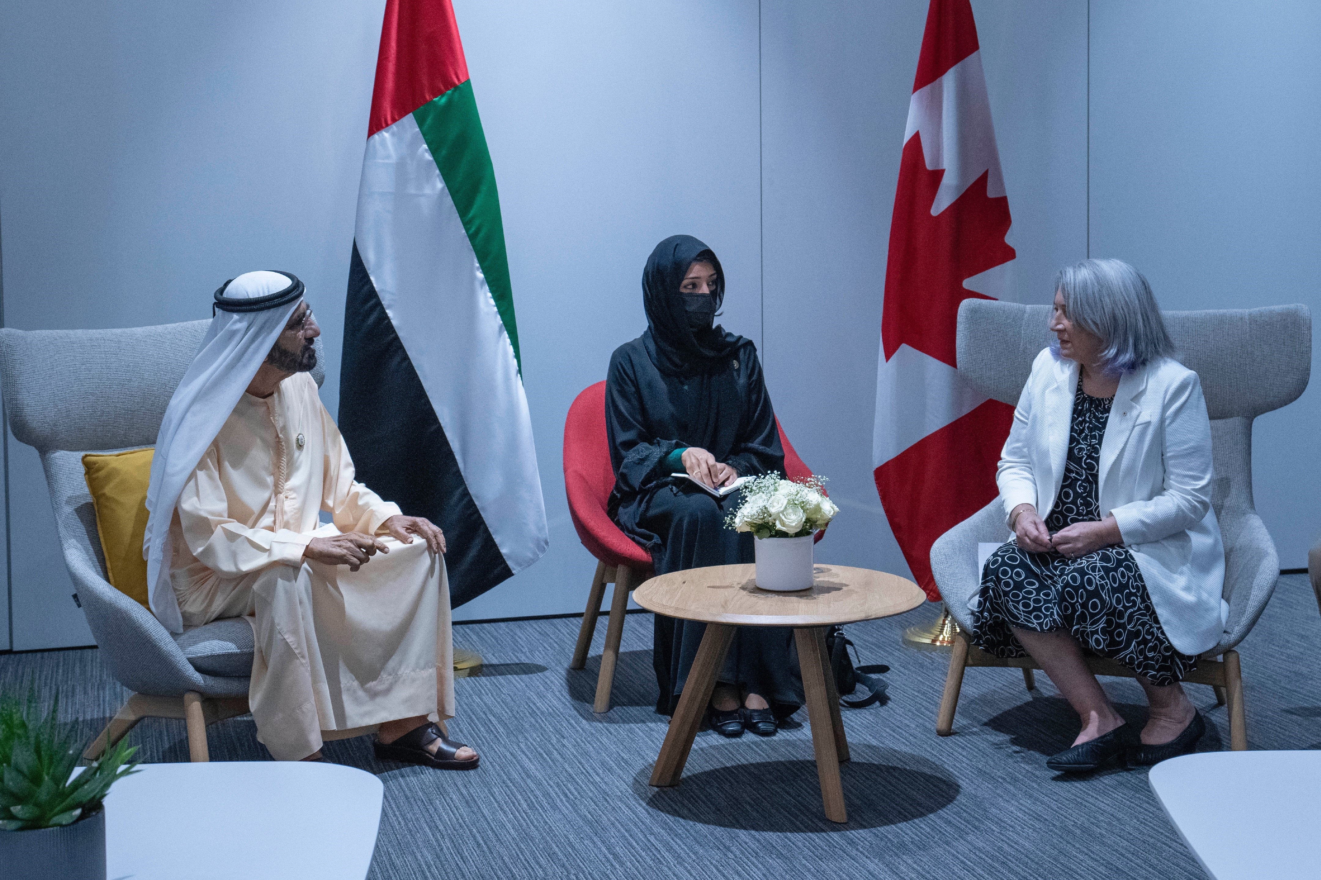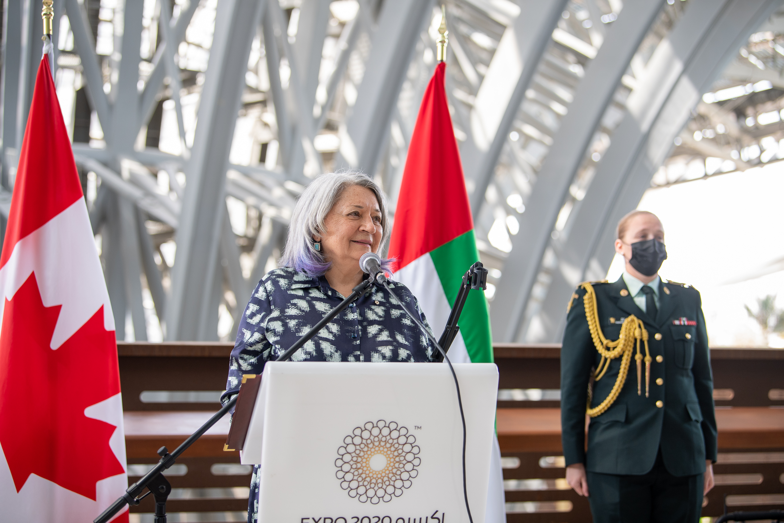 La gouverneure générale a assisté à la cérémonie de la Journée du Canada à l’Expo 2020 de Dubaï et a prononcé un discours en tant qu'invitée d'honneur. Elle a rencontré Son Excellence le cheikh Nahayan Mabarak Al Nahayan, Haut-commissaire des Émirats arabes unis pour l’Expo et ministre de la Tolérance des Émirats arabes unis. Leurs Excellences ont aussi visité plusieurs pavillons à l’Expo 2020 de Dubaï, notamment celui des Émirats arabes unis, du Qatar, du Koweït et des femmes.