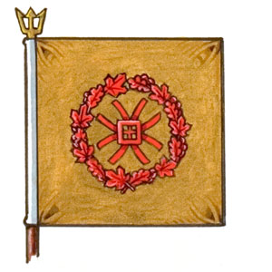 Étendard de Craig James HalbländerBlasonUn étendard, au guindant aux armes, au battant d’or chargé du cimier des armes accosté de deux représentations du premier insigne, le tout séparé par deux bandes d’argent lisérées de sable portant la devise en lettres du même; SymbolismeLe symbolisme de cet emblème est compris dans un ou plusieurs éléments de ce dossier. |