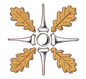Insigne de Wilson Hastings PatersonBlasonUn besant d’argent accompagné de quatre chevilles de golf du même posées en croix et de quatre feuilles de chêne d’or posées en sautoir; SymbolismeLa croix formée de tés évoque celle qu’on retrouve sur l’écu de l’archange Michel dans les armoiries de Dumfrees, en Écosse, lieu de résidence du grand-père paternel de M. Paterson. Les feuilles de chêne et la balle de golf font allusion au club de golf Royal Ashburn fondé par M. Paterson dans les environs de la moraine d’Oak Ridges. |