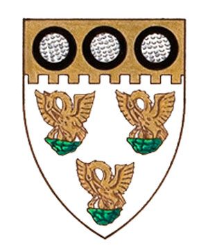 Armoiries de Wilson Hastings PatersonBlasonD’argent à trois pélicans dans leur piété d’or soutenus chacun d’un nid de sinople, au chef d’or chargé de trois tourteaux de sable surchargés chacun d’une balle de golf au naturel; SymbolismeLes trois pélicans dans leur piété évoquent d’autres armoiries écossaises concédées à des Paterson. Ici, le chef montre trois balles de golf symboliques dans des trous, qui symbolisent l’intérêt d’au moins trois générations de Paterson pour le golf, en commençant par le grand père de M. Paterson, en Écosse. |