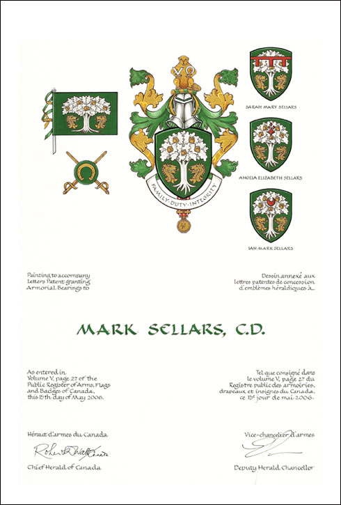 Concession d’armoiries, d’un drapeau et d’un insigne, avec brisures à Sarah Mary Sellars, à Angela Elizabeth Sellars et à à Ian Mark Sellars