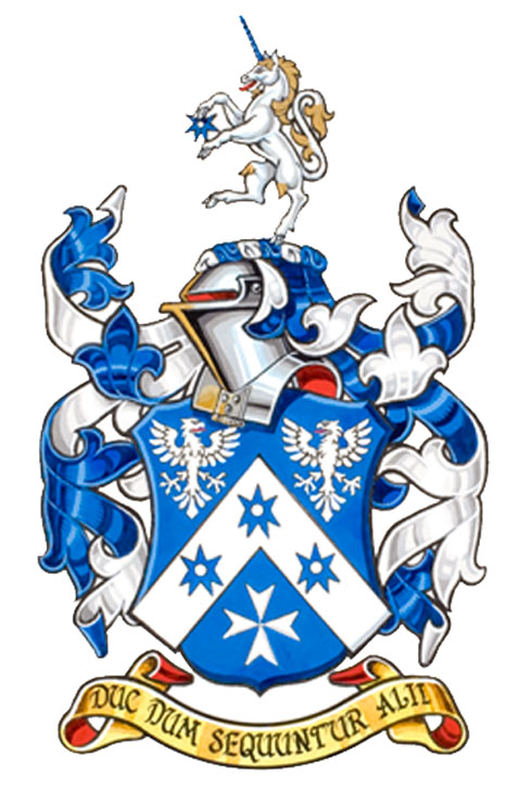 CimierBlasonUne licorne rampante d’argent, accornée d’azur, crinée d’or, tenant une molette d’éperon d’azur; SymbolismeLa licorne, représentant le courage et la persévérance, se distingue par l’élément des armes qu’elle tient entre ses pattes. |
