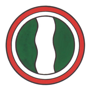 Insigne de Robert Hugh EmersonBlasonUn tourteau de gueules chargé d’un tourteau de sinople liséré et surchargé d’un pal ondé, le tout d’argent; SymbolismeLe vert, à gauche, représente le Canada et l’Amérique du Nord, tandis que le vert, à droite, représente la Grande-Bretagne et l’Europe. La bande ondulée qui les sépare représente l’océan Atlantique. Les deux anneaux portent les couleurs du Canada. |