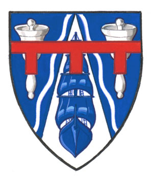 Armoiries de Derek Austin TiddBlasonD'azur à la pointe d'argent coticée-ondée du même chargée d'une brigantine d'azur posée de front accostée de deux clochettes à main d'argent leur poignée en pointe; SymbolismeLes clochettes à mains indiquent la fonction de M. Tidd comme crieur de la ville de Niagara Falls. La forme centrale rappelle celle d’un projecteur, une allusion à la carrière de M. Tidd comme producteur de salons professionnels et d’expositions et aussi à ses années dans le milieu théâtral. Le brigantin fait référence à la passion de M. Tidd pour la voile et à ses années de service au sein de la Marine royale durant la Seconde Guerre mondiale. Le grand voilier rend hommage au fait que M. Tidd a établi le Tall Ship Trust. Les bandes ondulées soulignent sa participation à des organisations navales. |