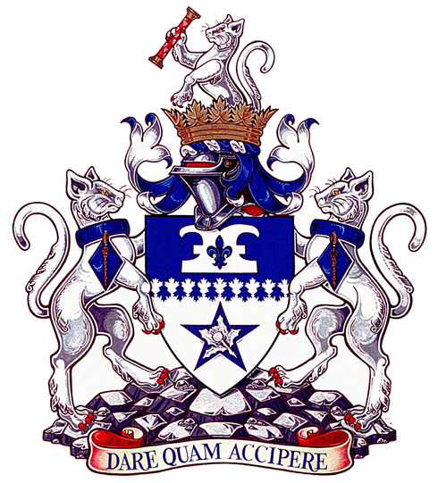 DeviseBlasonDARE QUAM ACCIPERE. Cette phrase latine signifie « Il vaut mieux donner que de recevoir ». |