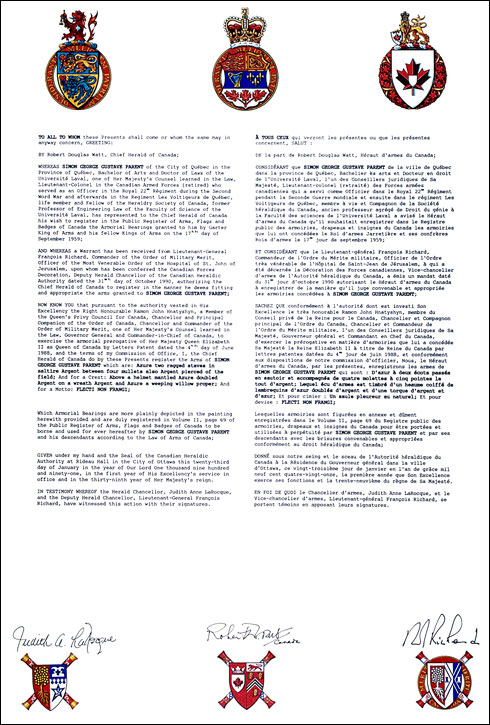 L'utilisation du contenu du Registre public est réservée à des fins de recherche uniquement. Les emblèmes héraldiques du Registre ne peuvent être reproduits sous aucune forme ou par quelque procédé que ce soit sans l'autorisation écrite de l'Autorité héraldique du Canada et/ou du récipiendaire.