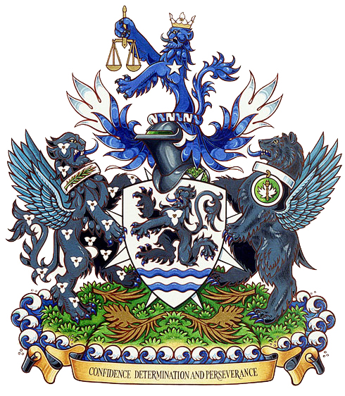 DeviseBlasonCONFIDENCE DETERMINATION AND PERSEVERANCE, signifiant « Confiance, détermination, persévérance »; SymbolismeCes mots font référence à la personnalité de Son Honneur, à sa profession et à ses fonctions parlementaires et vice-royales. |