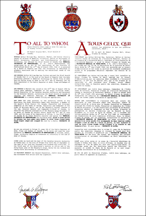 Autres renseignementsLes emblèmes du récipiendaire ont été précédemment consignés dans les archives du Collège d’armes, Londres, Angleterre, le 20 février 1951. |