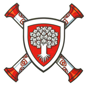 Insigne d'office du héraut Saint-LaurentBlasonPour le héraut Saint-Laurent: Une croix fleuronnée d'azur brochante sur un gril d'or enflammé au naturel; SymbolismePour le héraut Saint-Laurent: Un gril de fer, objet du supplice de saint Laurent, est présenté enflammé et surmonté d'une croix bleue qui se termine en fleur de lis, symbole de la France royale, de la Nouvelle-France et du Québec. Son nom fait allusion au plus grand et plus important fleuve de l'Est du Canada. |
