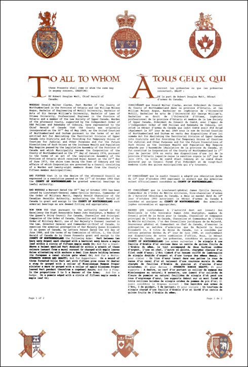 Concession d’armoiries, de supports, d’un drapeau et d’un insigne