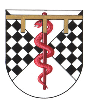 Armoiries de John Stephen CarboneBlasonÉcartelé en sautoir aux un et quatre d’argent, aux deux et trois losangés de sable et d’argent, à un bâton d’Esculape de gueules brochant; SymbolismeLes carrés noirs en forme de diamant représentent des morceaux de charbon (carbone en italien) qui font allusion au nom de famille du Dr. Carbone. La forme en X évoque un sablier qui, avec les diamants, symbolise tant les réalisations du Dr. Carbone que les défis de travail et de gestion du temps associés à ses professions de médecin et d’avocat. Le bâton d’Esculape symbolise la médecine. |