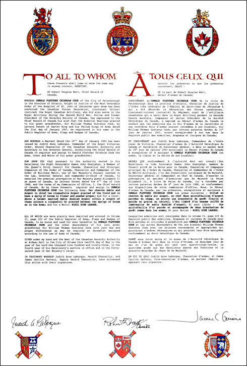 L'utilisation du contenu du Registre public est réservée à des fins de recherche uniquement. Les emblèmes héraldiques du Registre ne peuvent être reproduits sous aucune forme ou par quelque procédé que ce soit sans l'autorisation écrite de l'Autorité héraldique du Canada et/ou du récipiendaire.