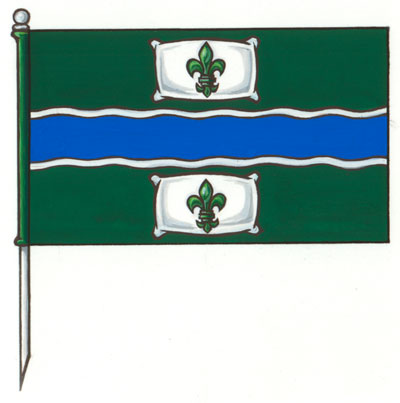 Armoiries de la Ville de HuntingdonBlasonDe sinople à la fasce ondée d’azur lisérée d’argent accompagnée de deux sacs de laine du même chargés chacun d’une fleur de lis de sinople; SymbolismeLe vert représente les terres agricoles de la vallée de Châteauguay et l’héritage irlandais de la ville de Huntingdon. La bande ondée bleue symbolise la rivière Châteauguay, qui devise la ville en deux. Les poches de laine représentent les industries de la laine et du tissage qui se trouvent de part et d’autre de la rivière. Les fleurs de lis évoquent le patrimoine des communautés francophone et anglophone puisqu’elles figurent à la fois dans les armoiries du royaume de France, dans les armoiries et le drapeau du Québec et dans les armoiries de l’ancien bourg de Huntingdon et Godmanchester, en Angleterre. |