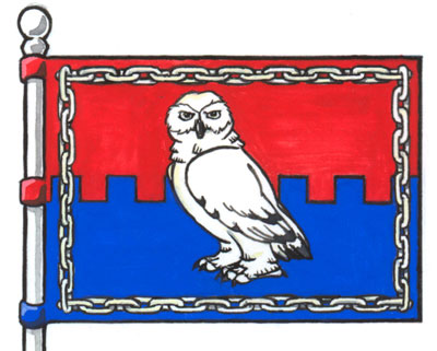 Armoiries de David Andrew HoveyBlasonCoupé-crénelé cousu de gueules sur azur à un harfang des neiges de profil au naturel, la tête de front, enclos dans une chaîne d’argent posée en orle; SymbolismeSelon certaines sources, le nom Hovey désigne soit un hibou (owl en anglais), soit une île fortifiée. Ces significations sont exprimées dans l’écu par le hibou et la ligne horizontale crénelée. Le hibou symbolise la sagesse tandis que l’île fortifiée représente la force d’âme. La chaîne est un symbole d’honneur, les colliers d’office désignant historiquement les titulaires de fonctions importantes et leurs grandes réalisations. Le rouge, le bleu et le blanc sont des couleurs qui lient la famille à l’Angleterre, aux États-Unis et au Canada, où les membres de la famille ont vécu et immigré au fil des générations. |