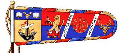 Drapeau de Randall Scott EchlinBlasonIncorporant les emblèmes concédés à Randall Scott Echlin par le Héraut d'armes du Canada le 13ième jour de juillet 2000: Un étendard, au guindant aux armes, au battant coupé cousu de gueules sur azur chargé de l’insigne accosté du cimier et d’un rencontre de cerf d’or, le tout séparé par deux barres d’argent inscrites de la devise en lettres de sable; SymbolismeLe symbolisme de cet emblème est compris dans un ou plusieurs éléments de ce dossier. |