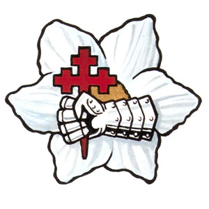 CimierBlasonUne main dextre armée au naturel posée en fasce tenant une croix recroisettée au pied fiché de gueules et mouvante d’un cercle de fleurs de cornouiller d’argent boutonnées d’or; SymbolismeLa main et la croix recroisettée constituent le cimier du clan Macdonald de Sleat utilisé par sir John A. Macdonald. Les fleurs de cornouiller ont été ajoutées comme élément distinctif du cimier de la Société. |