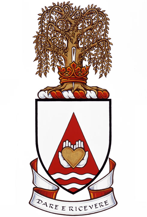 DeviseBlasonDARE E RICEVERE; SymbolismeCette phrase en italien, signifiant « Donner et recevoir », rend hommage aux ancêtres de Mme Lappa. Elle souligne l’importance à ses yeux de l’acte de donner aux autres, duquel on ne peut que recevoir en retour. |