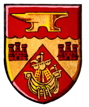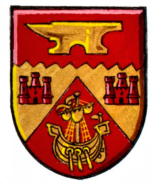 Armoiries d'Ernest Roderick SmithBlasonDivisé en chevron d’or à deux châteaux de gueules sur gueules à une nef d’or, sa voile ferlée, au chef de gueules chargé d’une enclume d’or; SymbolismeLa galère d’or figure régulièrement dans les armes des Macpherson. Elle rappelle ici que M. Smith a été nommé « Guardian of Clan Macpherson » par son chef, Macpherson de Cluny. Le château est un meuble héraldique du clan Macleod, auquel M. Smith est lié par sa mère. Ce dernier évoque en outre sa carrière en génie et en restauration de bâtiments. L’enclume, outil du forgeron (blacksmith en anglais), rappelle son nom de famille. |