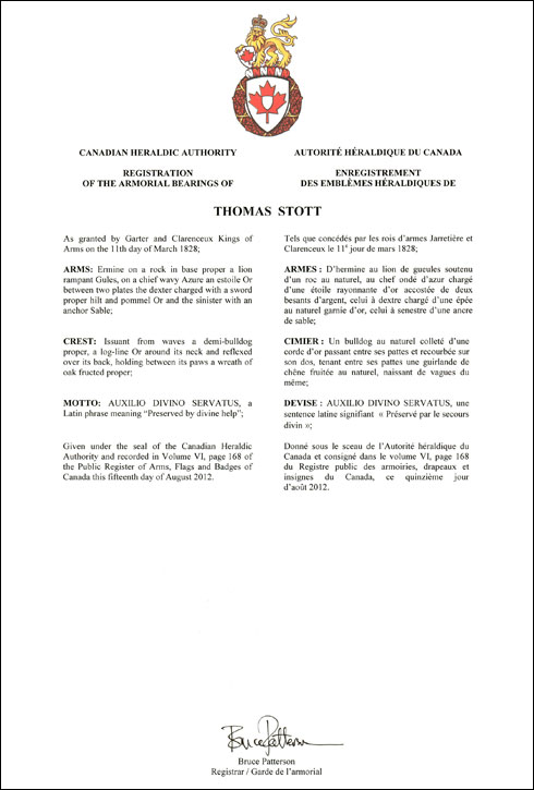L'utilisation du contenu du Registre public est réservée à des fins de recherche uniquement. Les emblèmes héraldiques du Registre ne peuvent être reproduits sous aucune forme ou par quelque procédé que ce soit sans l'autorisation écrite de l'Autorité héraldique du Canada et/ou du récipiendaire.