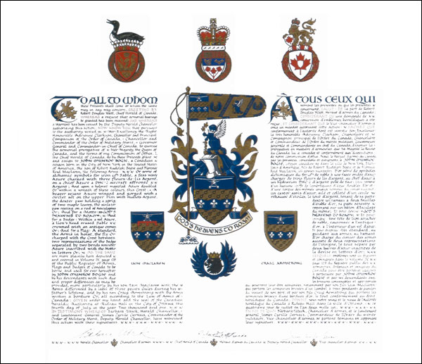 Concession d'armoiries, d'un drapeau et d'un insigne, avec brisures à Iain Maclaren Bogie et à Craig Armstrong Bogie
