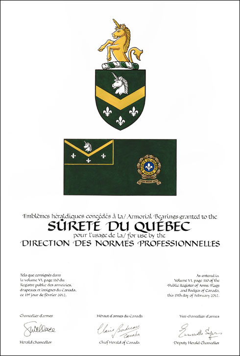 Concession d’armoiries et d’un drapeau pour l’usage de la Direction des normes professionnelles