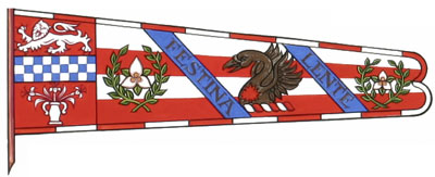 Drapeau de Roger Alexander LindsayBlasonUn étendard, au guindant aux armes, au battant burelé de quatre pièces d’argent et de gueules chargé du cimier accosté de deux représentations de l’insigne, le tout séparé par deux bandes d’azur inscrites de la devise en lettres d’or; SymbolismeLe symbolisme de cet emblème est compris dans un ou plusieurs éléments de ce dossier. |