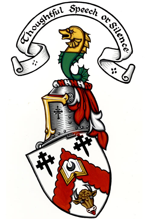 DeviseBlasonTHOUGHTFUL SPEECH OR SILENCE, signifiant « Un discours intelligent ou le silence »; SymbolismeCette phrase, qui signifie « Un discours intelligent ou le silence », se veut une réponse à la devise du chef du clan « Avise la fin ». |