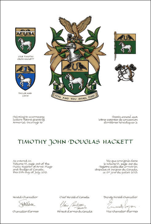 Concession d’armoiries, d’un drapeau et d’un insigne, avec brisures à Lyle Timothy Crow Hackett et à Taylor Ann Lewis