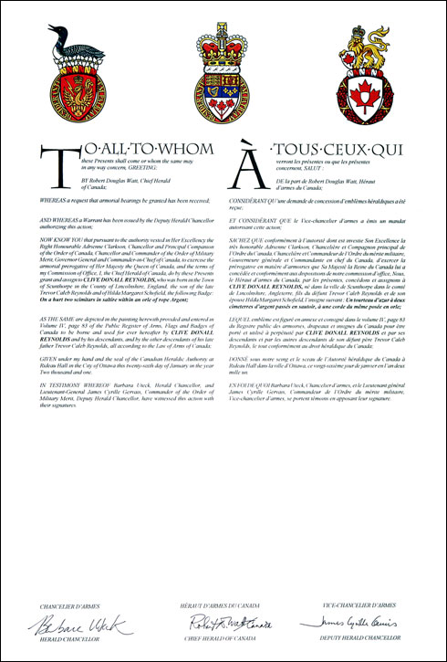L'utilisation du contenu du Registre public est réservée à des fins de recherche uniquement. Les emblèmes héraldiques du Registre ne peuvent être reproduits sous aucune forme ou par quelque procédé que ce soit sans l'autorisation écrite de l'Autorité héraldique du Canada et/ou du récipiendaire.