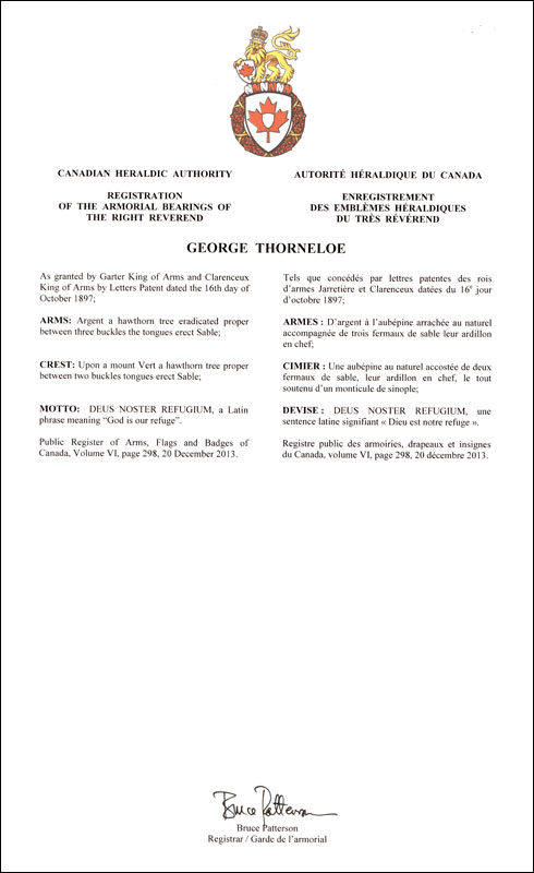 L'utilisation du contenu du Registre public est réservée à des fins de recherche uniquement. Les emblèmes héraldiques du Registre ne peuvent être reproduits sous aucune forme ou par quelque procédé que ce soit sans l'autorisation écrite de l'Autorité héraldique du Canada et/ou du récipiendaire.