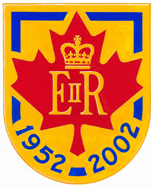 Insigne de la reine Elizabeth IIBlasonUn écusson d’or chargé d’une feuille d’érable de gueules surchargée du chiffre de Sa Majesté la reine Elizabeth II d’or brochante sur un orle d’azur brisé en pointe des dates « 1952 » et « 2002 » du même; SymbolismeCet insigne a été conçu pour être porté sur une épinglette par le personnel de la sécurité et de la logistique à l’occasion des tournées canadiennes des membres de la famille royale. Il utilise le chiffre personnel (généralement la lettre initiale du prénom sommée de la couronne héraldique appropriée) ou l’insigne du membre de la famille royale en tournée posé sur une forme géométrique ainsi qu’une combinaison de couleurs particulières. |