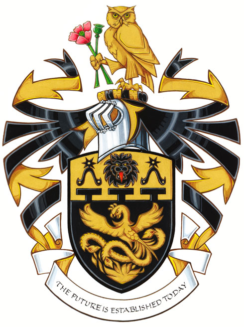 CimierBlasonUn hibou d’or tenant dans ses serres dextres deux pavots somnifères au naturel; SymbolismeLe hibou rappelle celui des armes de Hughes Hall, à l’Université de Cambridge, où le Dr Ritter a étudié. Les pavots somnifères, une forme précoce d’anesthésie, évoquent sa profession d’anesthésiologiste. |