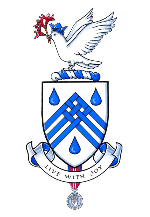 CimierBlasonUne colombe essorante d’argent ceinte d’une couronne érablée d’azur tenant dans son bec un bouquet de trois ancolies gracieuses au naturel; SymbolismeLa colombe représente le Saint-Esprit et la foi de Mme Kains. Les ancolies font référence à ses trois enfants ainsi qu’aux vertus chrétiennes de la foi, de l’espoir et de la charité. La couronne de feuilles d’érable symbolise le service au Canada. |