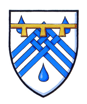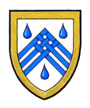 Armoiries parties de Peter Malcolm Kains et d'Anne-Marie Catherine KainsBlasonUsage autorisé : Parti, à dextre d’azur goutté d’or à trois mâcles aboutées en fasce, chacune composée de huit losanges, le tout du même (Peter Malcolm Kains), à senestre d’argent au chevron composé de deux tierces frettées, accompagné de trois gouttes, le tout d’azur (Anne-Marie Catherine Kains); SymbolismeL’écu comprend à droite les armes d'Anne-Marie Catherine Kains et à gauche les armes de son époux, Peter Malcolm Kains. |