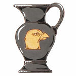 Insigne pour l'usage de Simone Hanebeau, fille de Udo HanebaumBlasonUn pichet de sable chargé d’une tête de faucon contournée d’or; SymbolismePour l’usage de Simone Hanebaum : La cruche antique est un symbole de Bède le Vénérable, patron des historiens et écrivains. Il incarne sa passion pour l’histoire britannique. Cette image est renforcée par la tête de faucon qui regarde vers l’arrière, comme vers le passé. |