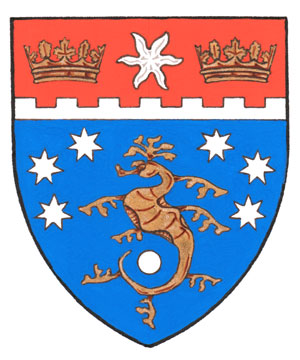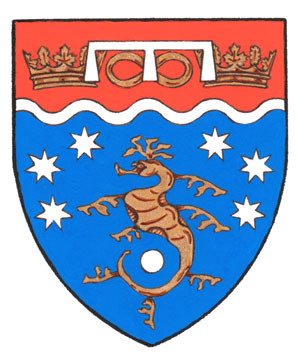 Armoiries de Donna Rae Barraclough LittleBlasonD’azur à l’hippocampe feuille mariné d’or, sa queue encerclant un besant d’argent, accosté de six étoiles à sept rais du même, au chef ondé de gueules soutenu d’argent chargé du symbole de l’infini accosté de deux couronnes civiles des Loyalistes, le tout d’or; SymbolismeLes couleurs symbolisent les origines écossaises et anglaises de Mme Little ainsi que les services qu’elle a rendus au Canada. L’hippocampe feuille rend hommage à sa patrie natale, l’Australie, cette espèce vivant uniquement dans les eaux de ce pays. Les étoiles à sept rais sont tirées du drapeau australien. Les couronnes civiles des Loyalistes représentent ses deux enfants et son lien avec Samuel Aikens, son ancêtre loyaliste de l’Empire-Uni qui s’est établi en Nouvelle-Écosse en 1784. Le disque blanc incarne une perle, le symbole d’un nouveau départ, souvent associé aux dragons en Orient. Le symbole de l’infini évoque les possibilités illimitées et sans fin de la vie. |