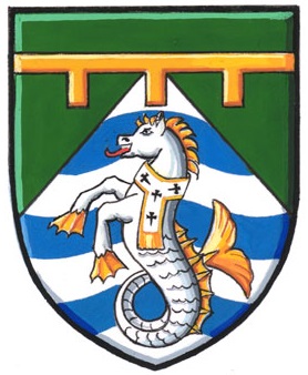 Armoiries de John Ross McLeanBlasonDivisé en chevron de sinople sur argent à trois burèles ondées d’azur, au cheval mariné d’argent criné d’or, ses nageoires du même, colleté d’un pallium au naturel; SymbolismeReprésentant la terre et l’océan, la couleur verte et les vagues bleues et blanches indiquent que M. McLean a vécu et travaillé sur presque tous les continents. Les lignes ondulées représentent les « sept mers » sur lesquelles il a navigué. Le tracé du chevron rappelle une toiture, illustrant la passion de M. McLean pour l’architecture ainsi que les maisons qu’il a conçues et construites. Le cheval mariné symbolise l’intérêt de M. McLean pour la vie marine et les deux disciplines sportives (course et natation) dans lesquelles il a participé à des compétitions internationales. Le pallium, principal meuble héraldique figurant sur les armes du diocèse de Canterbury en Angleterre, rappelle les liens profonds de M. McLean avec le diocèse et la Communion anglicane dans son ensemble. Étant donné l’intérêt de M. McLean pour l’étude de la religion, le pallium lui rappelle son désir de servir la communauté. |